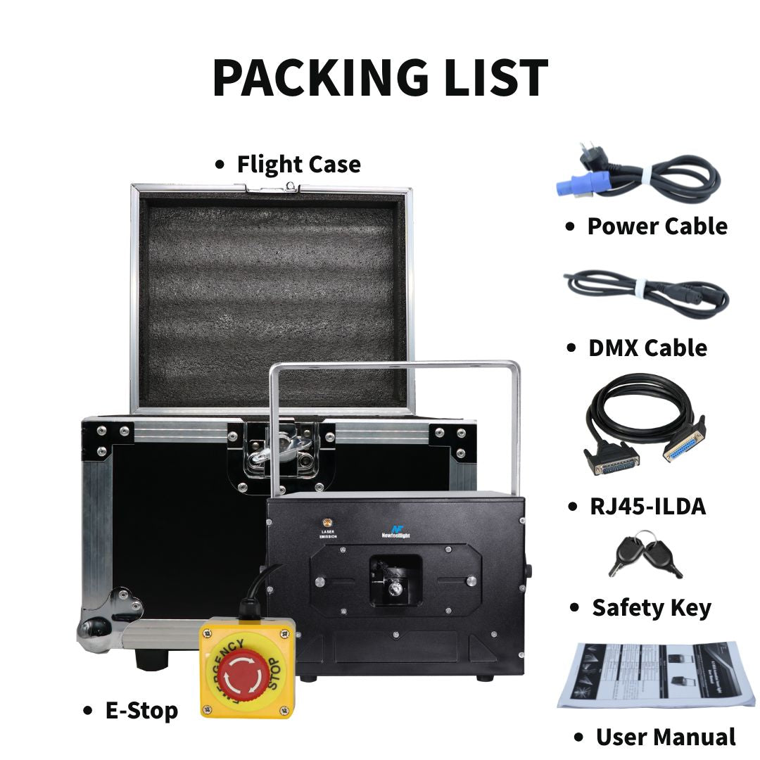 For safety-critical applications, the N1-A is fully compliant with U.S. FDA standards. It includes scan-fail detection, emergency shutoff, a key lock, and beam masking for risk-free use at public and private events. Whether you’re working with dmx laser light setups or pre-programmed installations, you can operate with confidence.